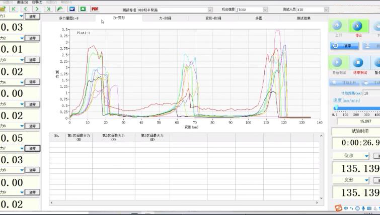 9、曲線選擇:可選擇應力-應變、力-位移、力-時間、位移-時間等曲線進行顯示和打印;